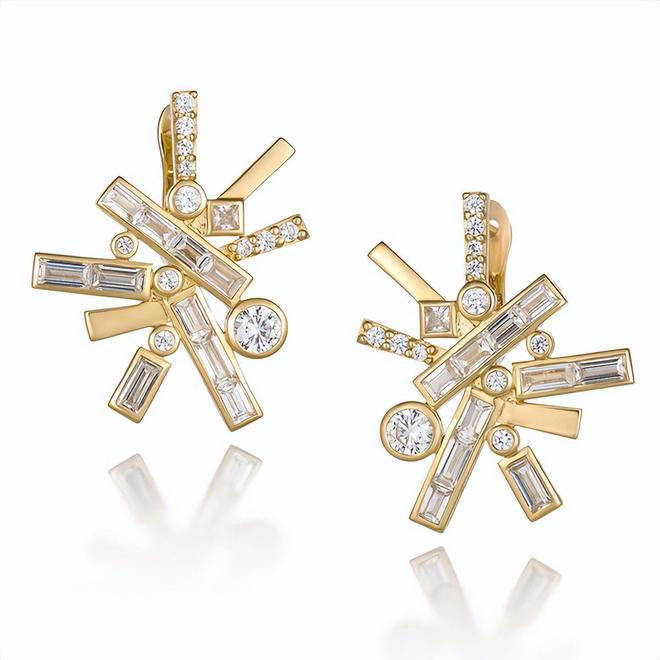 圆形、祖母绿切、公主方形切割的钻石与金属的纹理相映成趣,这种不规则的排列方式看似随意,却不经意间展现出了星星的光辉,给人带来新奇的视觉感受。